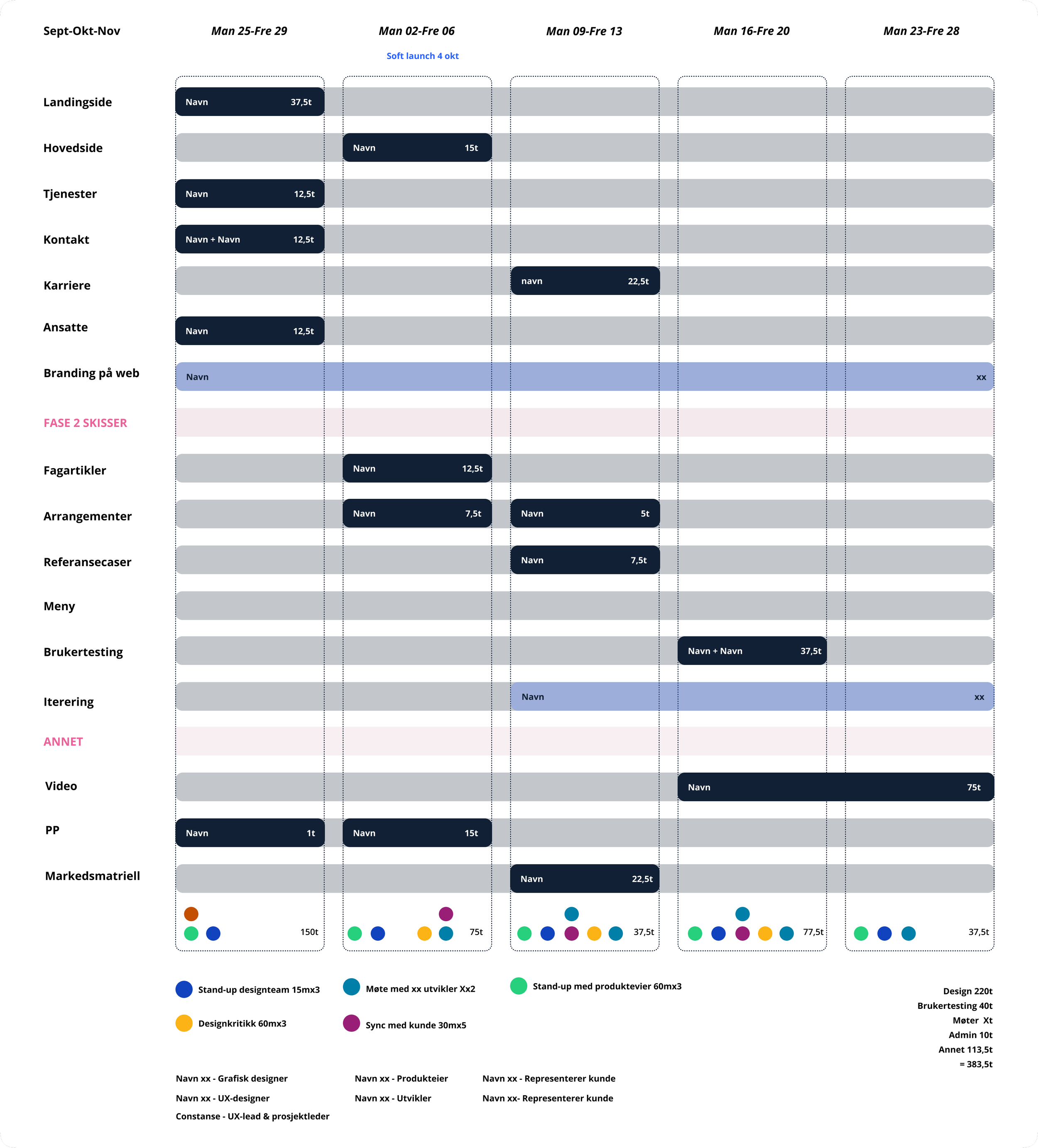 Som prosjektleder for web og design var noen av mine arbeidsoppgaver; planlegging for design og designerne; oppfølging av designerne; sørge for fremgang i prosjektet; samt kontakte med interessenter og nøkkelpersoner; bistod også ved behov for de andre designerne trengte bistad alt fra transkribsjon til å lage skisser på wireframes.